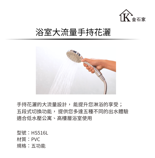 產品名稱:大流量五功能手持花灑